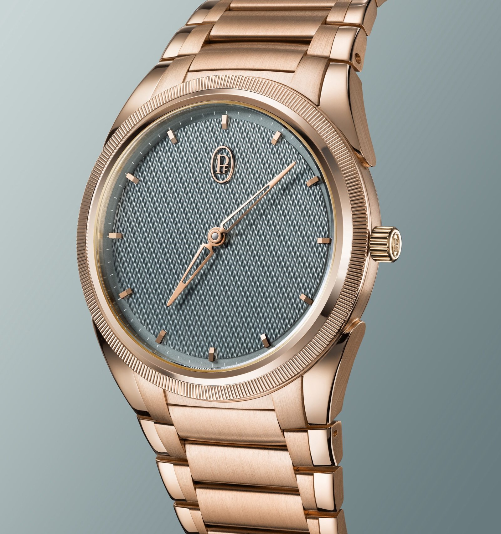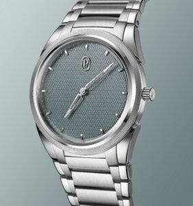 جزء كبير من جاذبية TONDA PF يكمن في قدرتها على التميّز الفوري في نظر العارفين. فالميناء المحفور يدوياً بنقش Grain d’Orge يتفاعل بنعومة مع الضوء، فيما يشكّل الإطار المحزّز بدقّة عنصراً حسّياً مضاداً. تُضاف إليه المؤشّرات المطبّقة وشعار PF المحفور بخفّة على التاج، ليكتمل مشهد بصري منسجم ومتكامل. وهذه العناصر ليست زخارف سطحية، بل علامات هوية دقيقة تميّز الساعة بصمت، من دون استعراض.