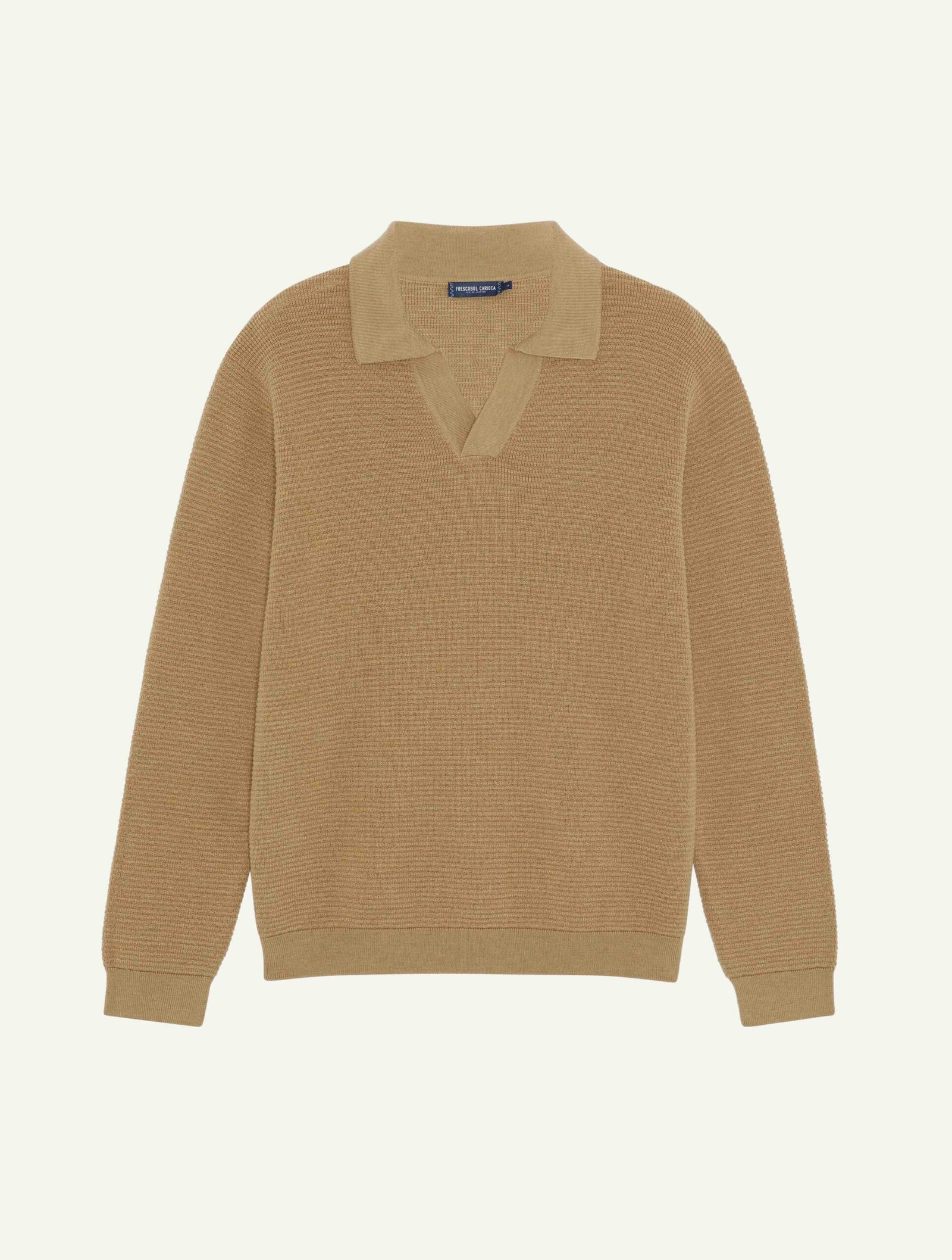 المحبوكة، تقدّم فريسكوبول كاريوكا بكل فخر تصميم Orlando الجديد، وهو عبارة عن قميص بولو بأكمام طويلة وياقة مفتوحة، مُصمّم من صوف الميرينو